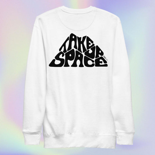 VQC 'Take Up Space' Crewneck Sweater – White Design